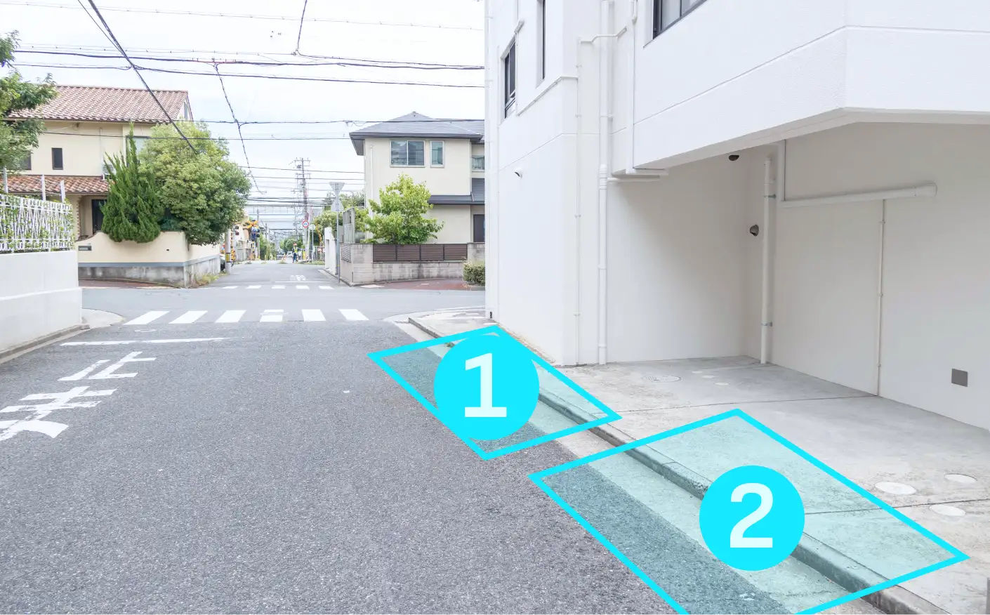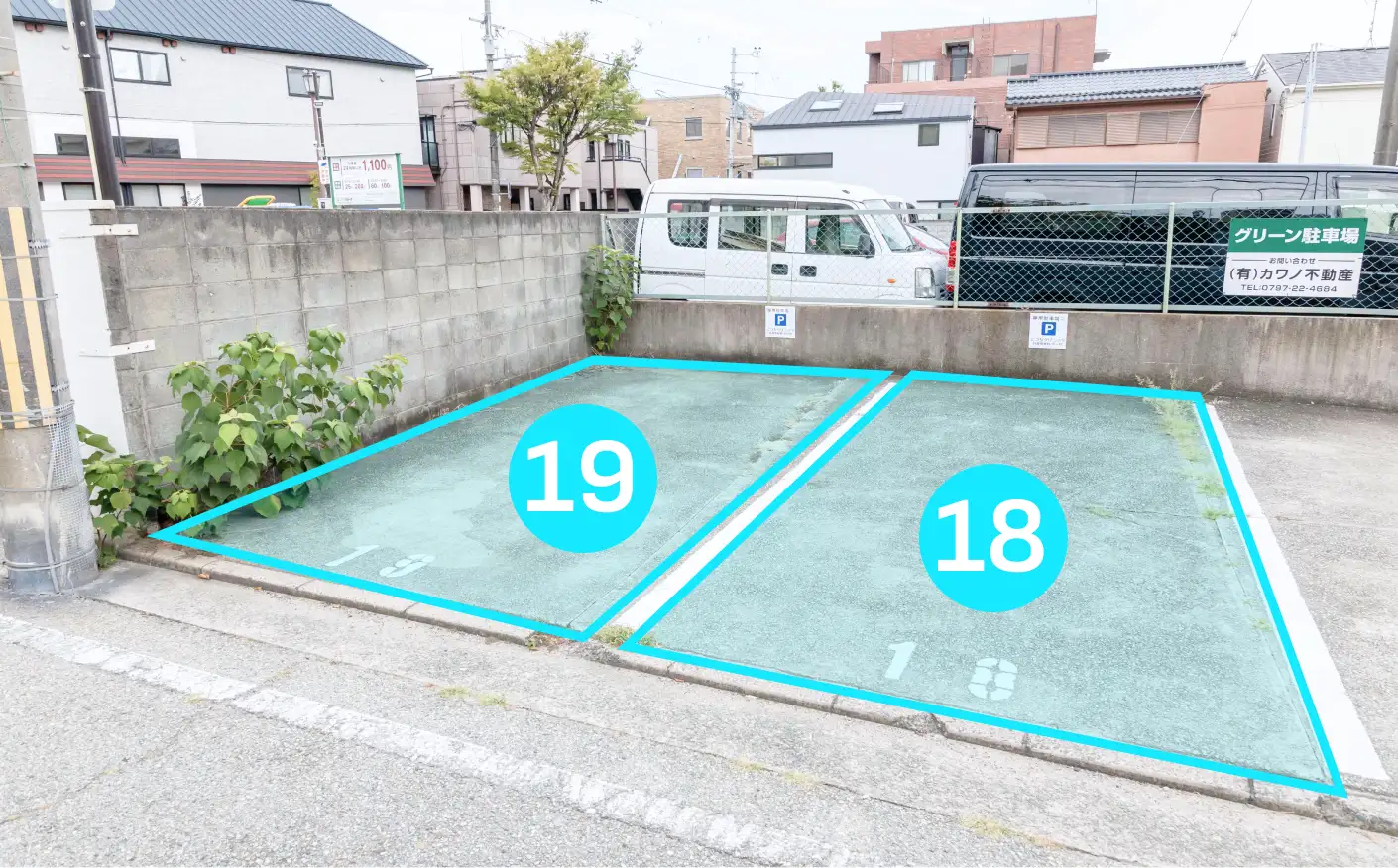 当院東側(打出公園南側)に2台分の駐車場もございます。(18番・19番。駐車スペースには医院のプレートが張ってあります。)