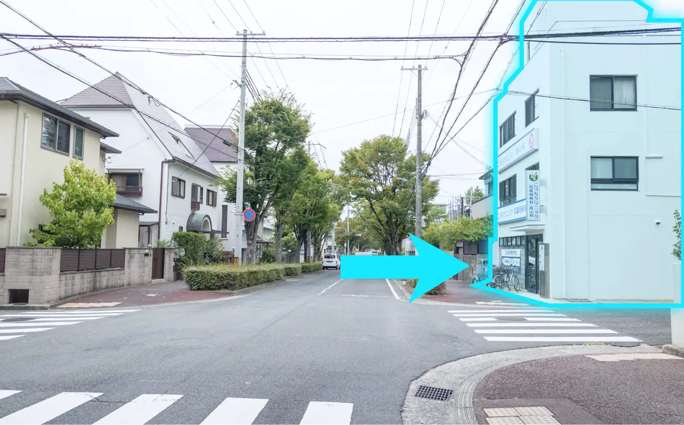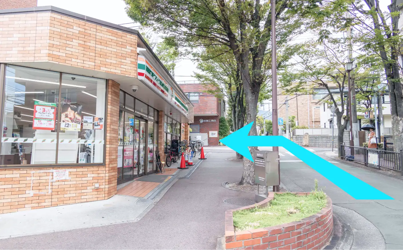 - 2.左手のコンビニ(セブンイレブン)を越えて左に曲がります。